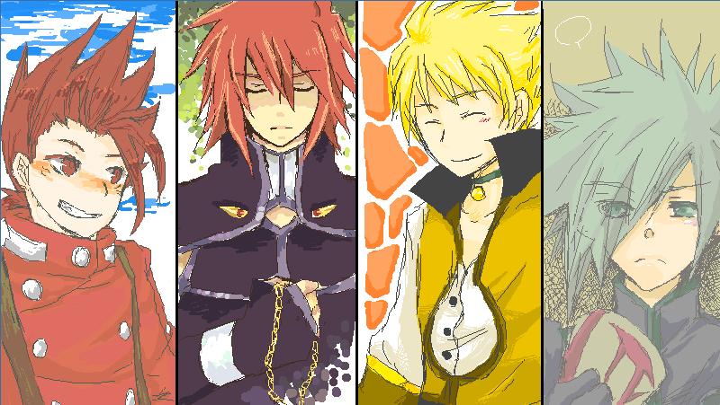 昨日の絵チャの産物。ご、豪華メンバーすぎてひぃひぃ言ってた・・・!貴方達が少しでも筆を進める度に見えないところで転がり悶えてた事をお許し下さい。・・・気持ち悪いな自分・・!絵は書いた本人に似るといいますが、このクラトスさん見てると周りの素敵絵にはぁはぁしてるようにしか見えない・・・。自分がそうだったからね。しかも親子そろってるよ最高!(((