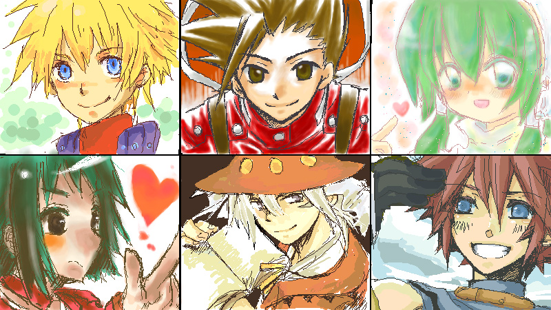 左上から、カイル=庵、ロイド=ジョナサン、イオン様=かりんとうさん、リッド=マメ子の旦那様、クラースさん=なも、ファラ=あゆにさんです^^
