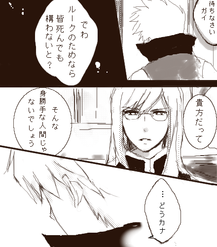 世界よりルークなガイさまダイスキ!でもジェイドだって辛いのだよ><いつかこの事で言い争ってるガイラルディアと大佐を描きたいです(描かんで宜しい