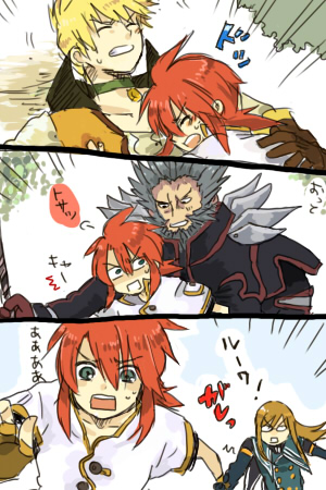 ルーク可愛いですよねなんであんなに可愛いんでしょうかねあの子。赤いからとか後ろ髪がぴょこぴょこしててヒヨコみたいだとか全体的にはショートケーキみたいだとか強気で弱気なトコロとかアッシュに駆け寄るトコロが犬みたいで可愛いなああとか上げていったらもうキリがないですが本当に可愛いですよねあの子。