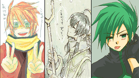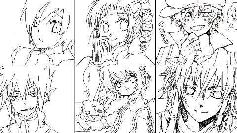 ちえ(ルカ)、ジョナさ(アンジュ)、なも(スパーダ)、その下マメコさん(オリイオ様)、由月さん(アニス)、石岡(シンク) です!!!ひぃぃ皆線画が綺麗すぎるううう!!!