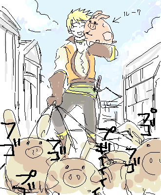 メロ②さん>>>ガイ、ブウサギに引き摺られるの巻き(爆笑)引き摺られたせいで尻餅ついてそのまま更に引き摺られてタイツが破けてしまわないか心配でなりません!!!ブウサギあれであってるのか激しく怪しいですが可愛いと言っていただけて嬉しいです・・・^^///!!