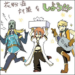 とっきぃ>>>>>花粉対策の三人可愛いなんてありがとうございますー!笑!たまに(というかいつも)意味不明な日記絵ですんません!!あの大佐を素敵と言ってくれるなんて心がなんてお広い!