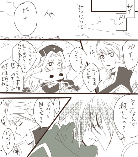 マメ子の旦那v>>>>>ちょ・・・・!!!!!ごおおおおおおおおおおお///やばいやばい今私の世界がやばい事になってる・・・!!!!春という春が押し寄せまくってる・・・!!!!!!ぎゃーーーーもう大すきですマメ子の旦那のガイルク・・・!!!!!なんだこの異常なまでにこみ上げてくる愛しさは・・・!おまえら好きだーーーーーーーーー!!!!!///旦那有難う大すきだよ・・!日記の方にあったホントはこっちにしようと思ってた方も実は凄く欲しいです。頂き物に三点セットでどどんと載せたいですぎゃははファンに刺されるさ!(贅沢すぎで)ほんとうに有難うございました!恐れ多くて頭が上がりませんもう!また遊んでやってくださると本当に喜びます!有難うございました!!!!!